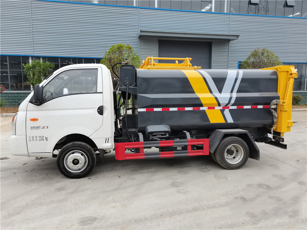 側裝式壓縮垃圾車屬于自裝卸式垃圾車的一種,采用側提桶上料方式進行生活垃圾收集,采用推板推擠或自卸式進行卸料。主要結構:汽車底盤、垃圾廂體、底架、側提桶機構、后門總成、推板總成、液壓系統和電控系統。液壓及電控系統由油泵、油缸、油箱、電液**閥、PLC和**開關等組成。同時本車自重輕,箱體為圓弧形,容積大,同等車型中裝載量**,并且美觀大方。